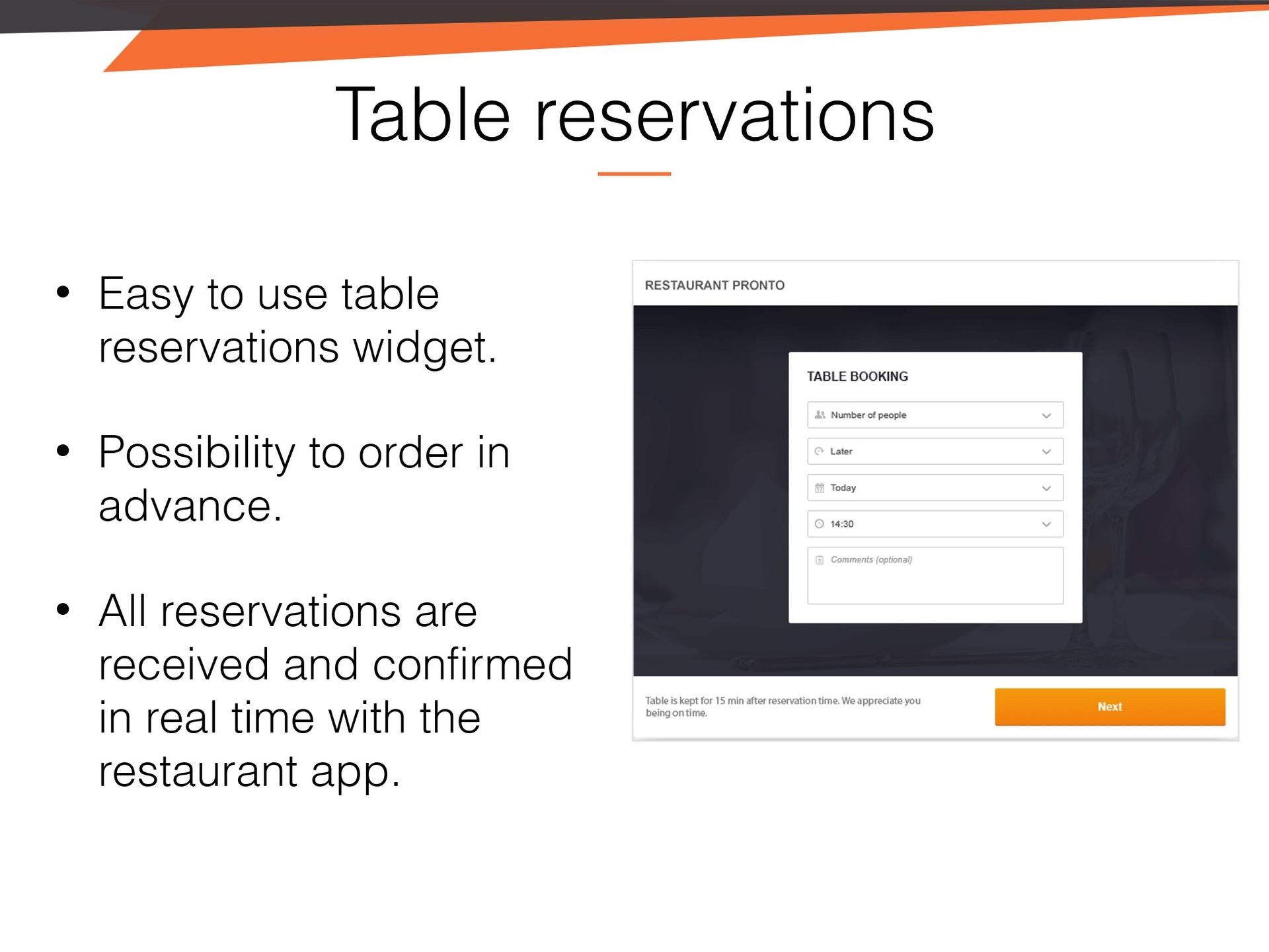 With our integrated “Table Reservation” + “Order ahead” features, your guests can now book a table & order food in advance.